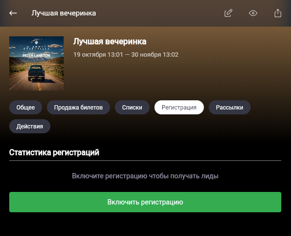Предварительная регистрация на событие позволяет собрать новые контакты целевой аудитории. Зарегистрироваться на событие посетители могут только при наличии аккаунта и мобильного приложения FlatAudio. Регистрация подобным образом позволяет организатору выстроить дополнительные каналы коммуникации с текущей и потенциальной целевой аудиторией в дополнение к email и sms рассылкам.