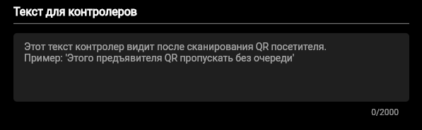 Текст для контролера сообщит какое действие предпринять после успешного сканирования QR-кода