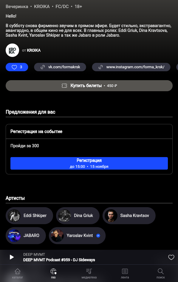 Текст для посетителей отображается в приложении FlatAudio и сообщает о возможностях, которые получит зарегистрировавшийся пользователь