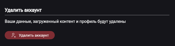 В разделе "Настройки" доступна функция удаления аккаунта.