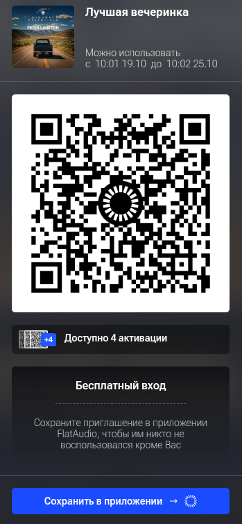 Приглашение может иметь сразу несколько активаций. Это значит, что по нему могут пройти сразу несколько человек.