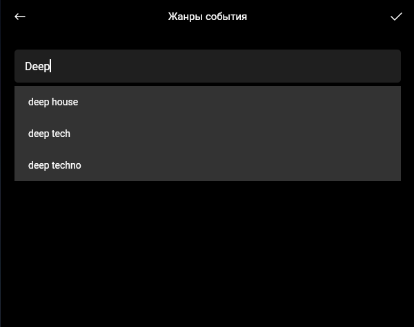 Для правильной систематизации события в системе FlatAudio необходимо указать минимум 1 жанр из предложенного списка