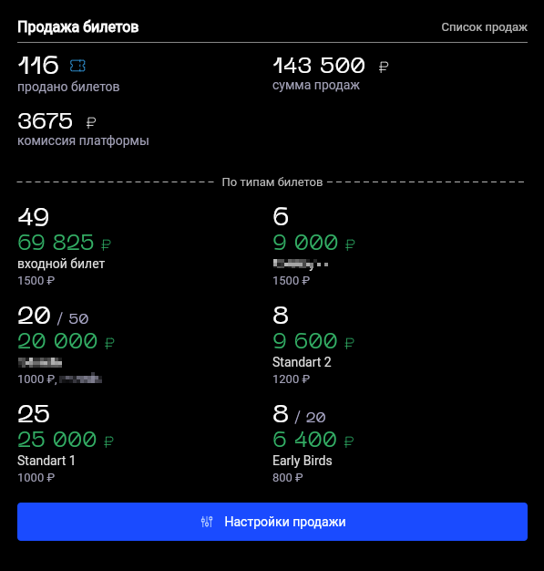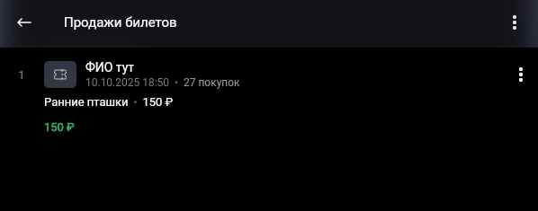 Статистика продажи билетов доступна сразу после включения продажи билетов на событие в разделе "Продажа билетов"