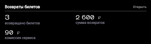 Отдельным блоком доступна статистика по возвратам билетов, осуществленных через FlatAudio
