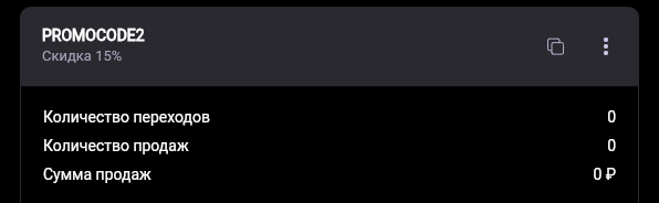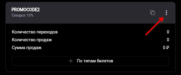 В каждой карточке промокода доступно копирование ссылки или QR-кода для перехода на страницу продажи билетов с примененным промокодом